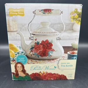 The Pioneer Woman Holiday Edition CHEERFUL ROSE 1.9 Quart Enamel Tea Kettle NEW