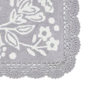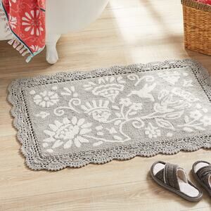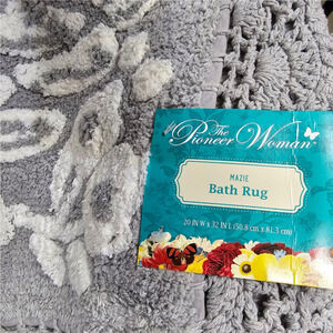 The Pioneer Woman Mazie Two-Color Floral Crochet Soft Silver Cotton Rug NWT