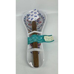 The Pioneer Woman Melamine Spoon Rest and Silicone Spatula Set Mazie Pattern NEW