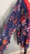 Navy kimono with vibrant floral patterns. Features red and orange accents. Perfect for layering.