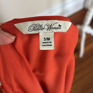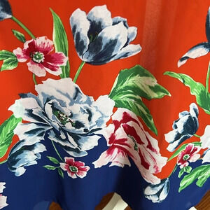 Gently used, The Pioneer Woman Floral Kimono. This lighweight kimono is orange (looks a little red in the photos) with a blue hem adorned with a floral design. No closures on this kimono. Size Small/Medium