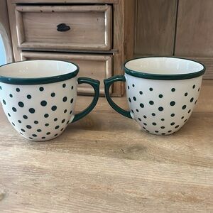 The Pioneer Woman Set of 2 Coffee Mugs Green Polka Dots Tea NWT
