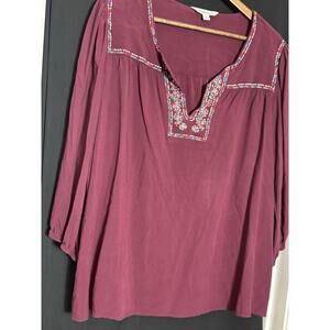 The Pioneer Woman Split Neck Embroidered Blouse Women's Plus Size 2X