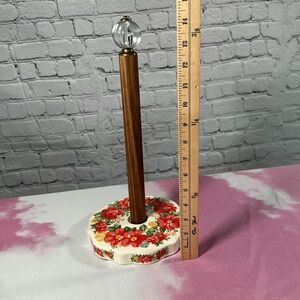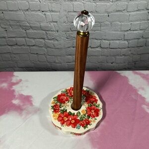 The Pioneer Woman Vintage Floral Paper Towel Holder adds cheerful country charm to any kitchen. Made of beautiful acacia wood on a durable stoneware base featuring Ree's signature floral design and topped off with a decorative acrylic knob, the vintage-inspired paper towel holder provides a delightful touch to any kitchen or dining room. A must-have addition to your home is The Pioneer Woman Vintage Floral Paper Towel Holder.