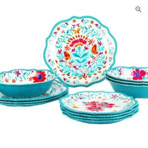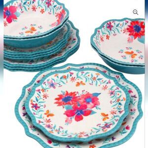 The Pioneer Woman picnic set 12 pieces NIB melamine DW Safe 🌺🌺 Folk Geo