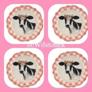 The Pioneer Woman set of four pink 7 inch novelty Cow Gingham scalloped plates