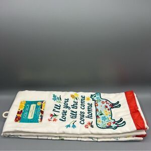 Set includes embroidered“I’ll love you until the cows comes home” and one farm animal print towel. 100% cotton. 20Wx30L