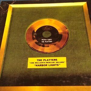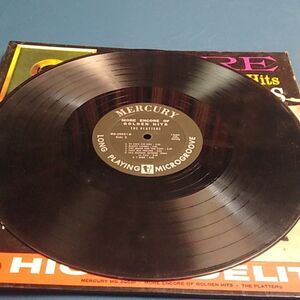 Vintage vinyl record featuring The Platters' greatest hits. Classic album cover with vibrant colors.