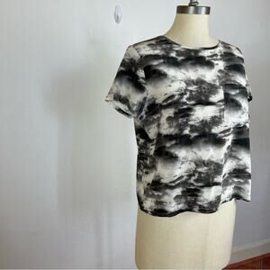 Excellent used condition. Size XS. No rips or stains. Short sleeve, crew neck, unlined, 100% silk. B3