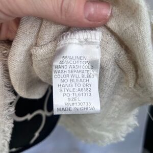 The Porter Collective NWT Vneck Fringe Trim Linen Blend Neutral Top Size Large