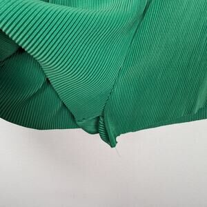 The Post Kelly Green Plisse Button Front Romper. Button front, long sleeves with collar. Stretch plisse pleat material. 95% polyester, 5% spandex.