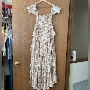 Size Small floral maxi dress from The Post Boutique. Super flattering, ruffled tiers, sash tie, and a side slit.