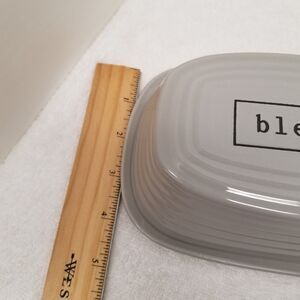 The Pottery People butter dish is a vintage/retro style covered dish in a solid gray color. It is made of stoneware, measures 7.5 inches in length and 2 inches in height with a glossy finish. This dishwasher and microwave safe dish is perfect for serving butter in a stylish way. 3.781