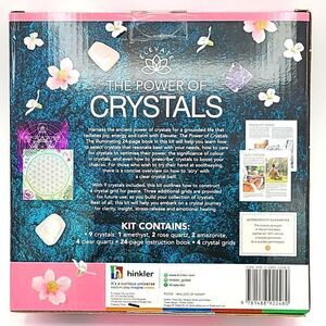 - Includes 24 page instruction book, 9 crystals, 1 amethyst, 2 rose quartz, 2 amazonite, 4 clear quarts & 4 crystal grids