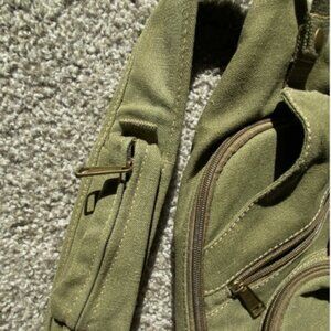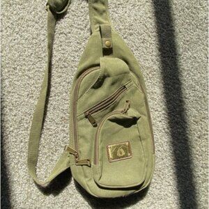 The Prairie Schooner 3904 Canvas Sling Bag in green is a versatile and durable
