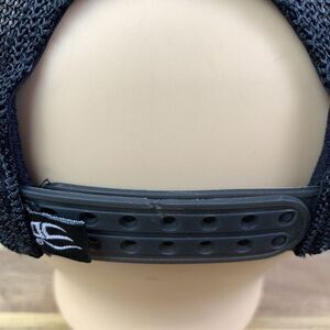 The Preserve baseball cap. Outdoor Cap brand, strap back, adjustable. Navy blue with black mesh back.