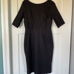 The Pretty Dress Co HEPBURN PENCIL DRESS IN BLACK PINSTRIPE