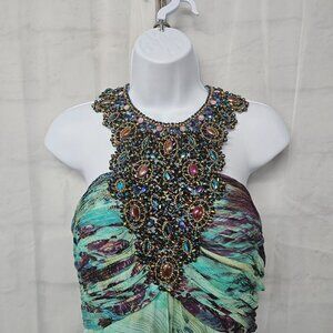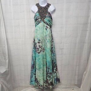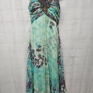 The Prom Shoppe Dress Teal Floral Beaded Choker Maxi Formal Prom 8