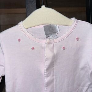 The Proper Peony pima footies scalloped baby girl rosettes embroidery sleeper