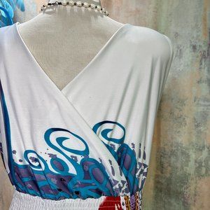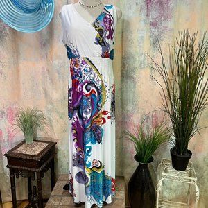 πThe Pyramid Collection Awesome Print Plus Size Maxi Dress w/ Elastic Waistline