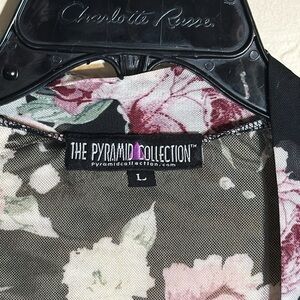 Introducing the Pyramid Collection Black Sheer Open-Front Floral Print Cardigan, a stylish and versatile piece that adds a touch of elegance to any outfit. The open-front design allows for easy layering and adds a chic, casual vibe to your look.