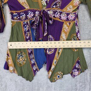 The Pyramid Collection Kimono Top Womens Medium Patchwork Tie Waist Boho Rayon