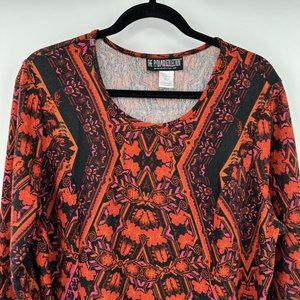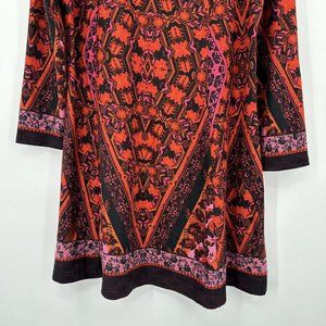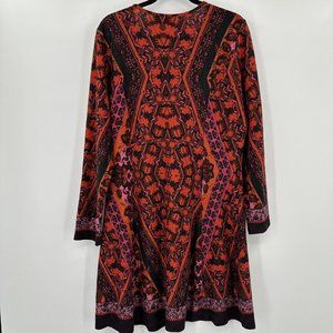 The Pyramid Collection Long Sleeve Floral Aztec Pattern Stretch Dress Sz XL