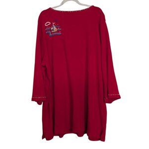 The Quacker Factory Womens 100% Cotton Red Beaded Beach Lighthouse Nautical Long Sleeve Tunic Shirt Dress Size 2X