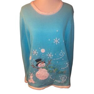 The Quacker Factory Blue Long Sleeve Light Up Long Sleeve Sweater Size