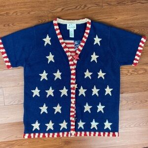 The Quacker Factory Button Down Knit Sweater American Flag Academia Size Large