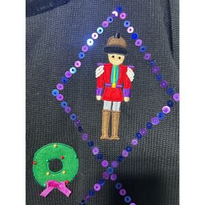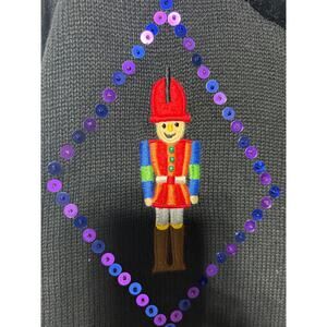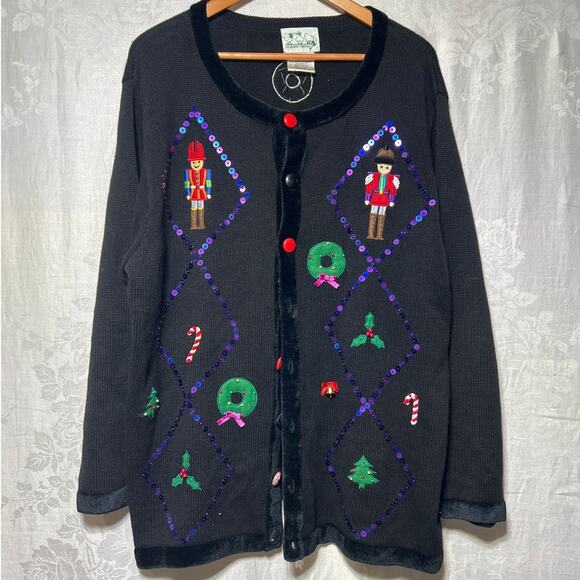 The Quacker Factory Cardigan Sweater 1X Black Nutcracker Sequin Holiday