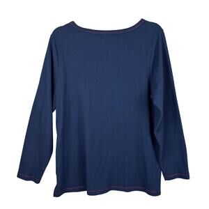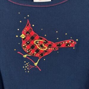 The Quacker Factory Long Sleeve Waffle Knit Thermal Size L Christmas Cardinal Navy Red