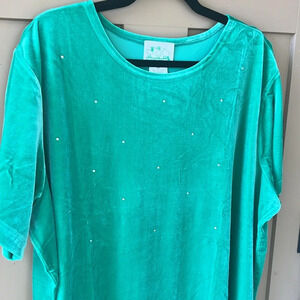 The Quacker Factory New w Tag 2X Kelly Green Short Sleeve Crushed Velvet Blouse