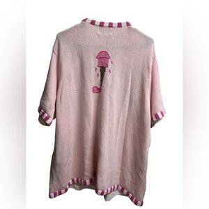 The Quacker Factory Pink Ice Cream Fruit Short Sleeve Sweater Embroidered