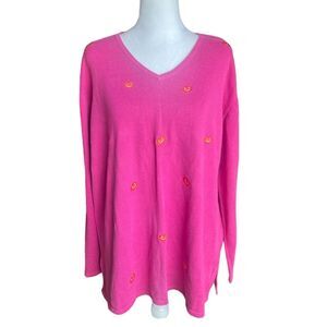 The Quacker Factory Pumpkin Embroidered Sweater Pink Long Sleeve Womens Size XL