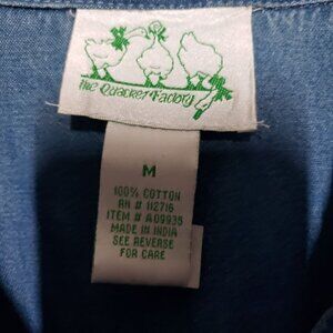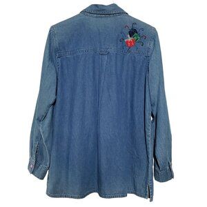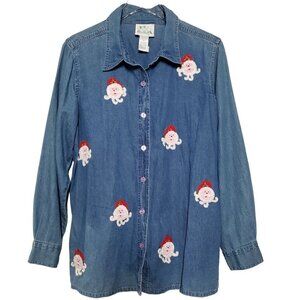 The Quacker Factory Santa Chambray Denim Shirt Embroidered Embellished Womens M