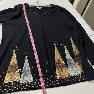 The Quacker Factory Sequin Sweater 1X Black Gold Sparkle Christmas Tree Festive