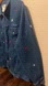 Denim jacket with star and rhinestone embellishments. Features button-up front plus side and chest pockets.
