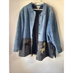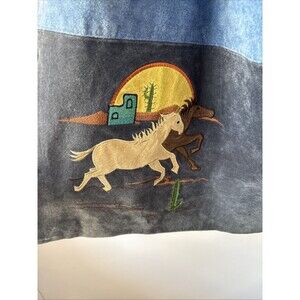The Quacker Factory Suede Leather Coat Embroidered Western Horses Jacket-Size 3X