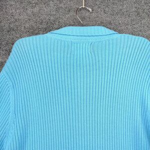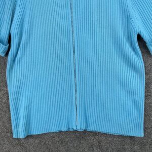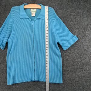 The Quacker Factory Sweater Womens Large Blue Full Zip Ribbed Knit Short Sleeve