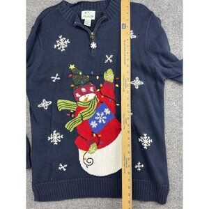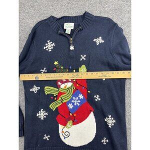 The Quacker Factory Sweater Womens Large Navy Quarter Zip Snowman Christmas Ugly