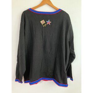 The Quacker Factory USA Patriotic Womens 2XL Black Button Cardigan Sweater