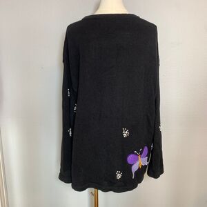 The Quacker Factory Button Up Cardigan Black w/ Butterflies Size 1X Measurements taken flat and are approximate: Pit to Pit: 24" Length: 27"