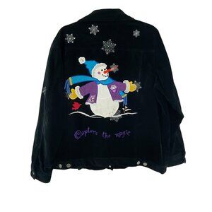 The Quacker Factory Women's Festive Snowman Velvet Jacket Embroidered Size L