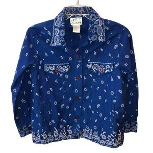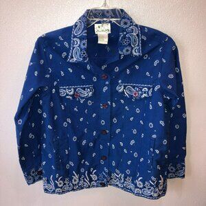 The Quacker Factory Womens Medium Blue Paisley Long Sleeve Trucker Jacket Size M