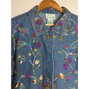 The Quacker Factory Women's Medium Chambray Beaded Embroidered Shirt