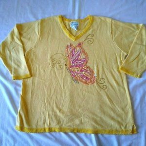 The Quacker Factory Womens Size 1X Sweater Sequins Butterfly Long Sleeve Yellow