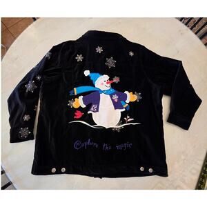 The Quacker Factory Women's Velvet Holiday Christmas Jacket SZ 1X Snowman