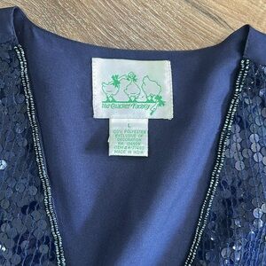 The Quacker Factory sequin snowman Christmas vest Large Navy