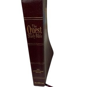 The Quest Study Bible NIV Zondervan Bonded Leather Brown Comfort Print . The presented to page has a name written in it otherwise, there are bi other writings within the pages.